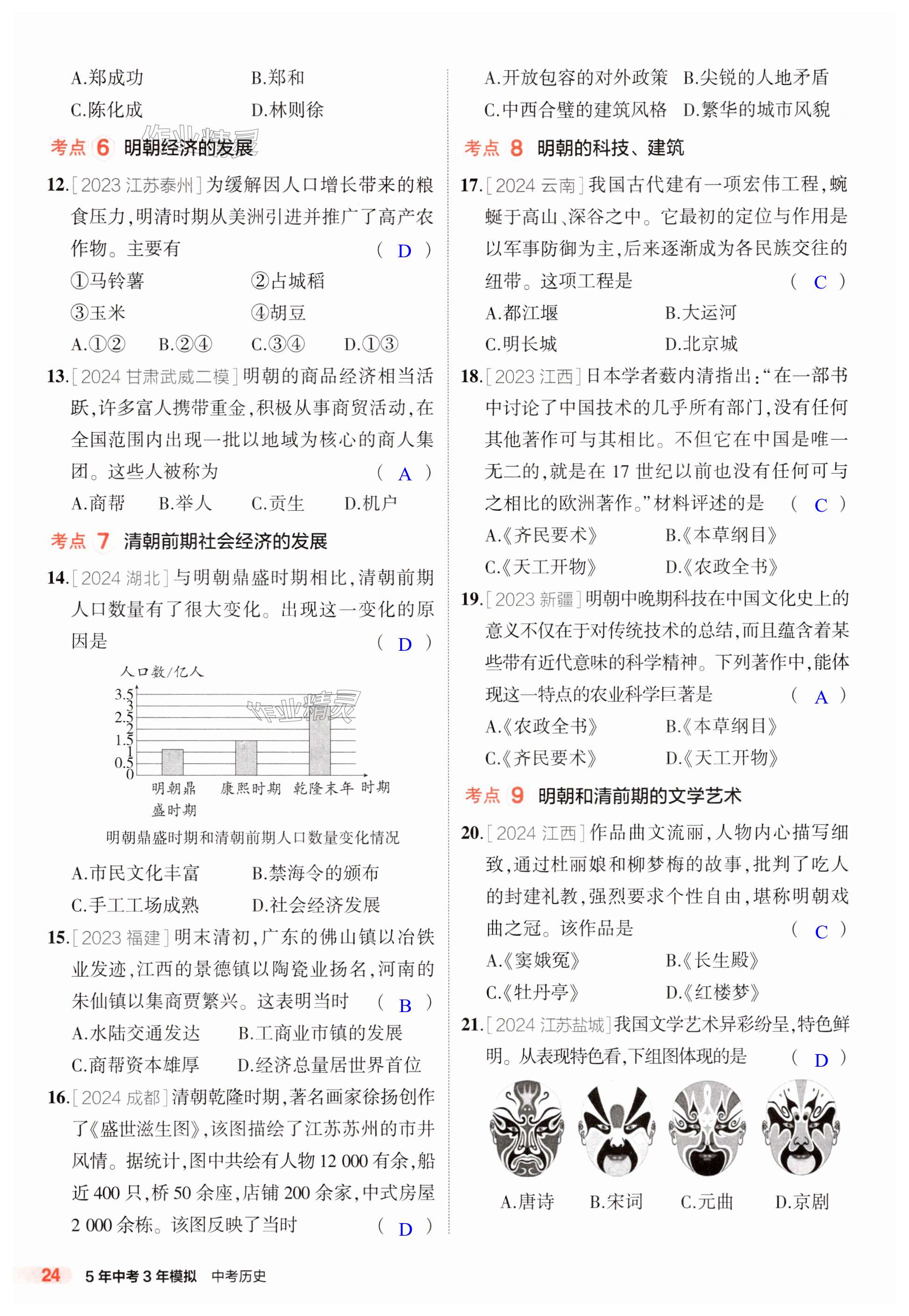 注:目前有些书本章节名称可能整理的还不是很完善,但都是按照顺序排列的,请同学们按照顺序仔细查找。练习册 2025年5年中考3年模拟历史人教版山东专版 答案主要是用来给同学们做完题方便对答案用的,请勿直接抄袭。