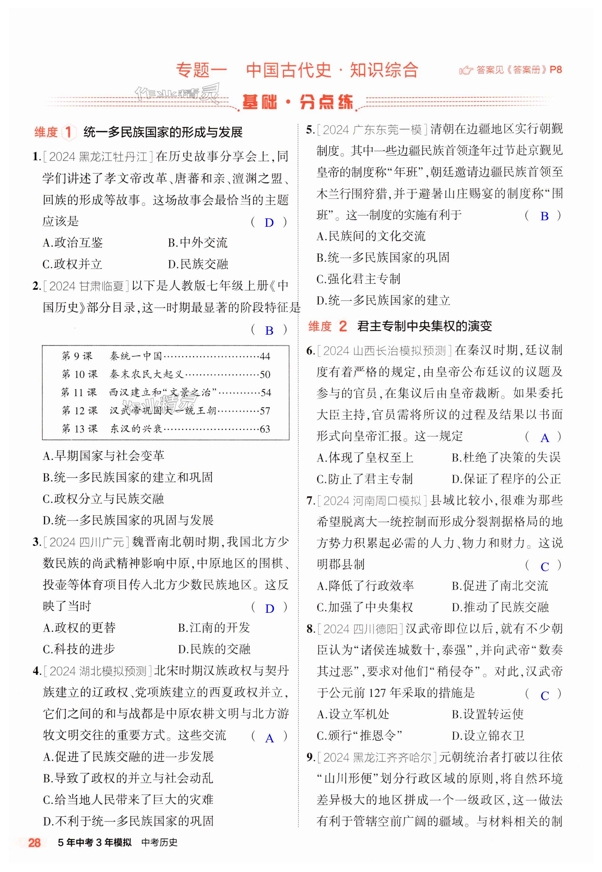 注:目前有些书本章节名称可能整理的还不是很完善,但都是按照顺序排列的,请同学们按照顺序仔细查找。练习册 2025年5年中考3年模拟历史人教版山东专版 答案主要是用来给同学们做完题方便对答案用的,请勿直接抄袭。