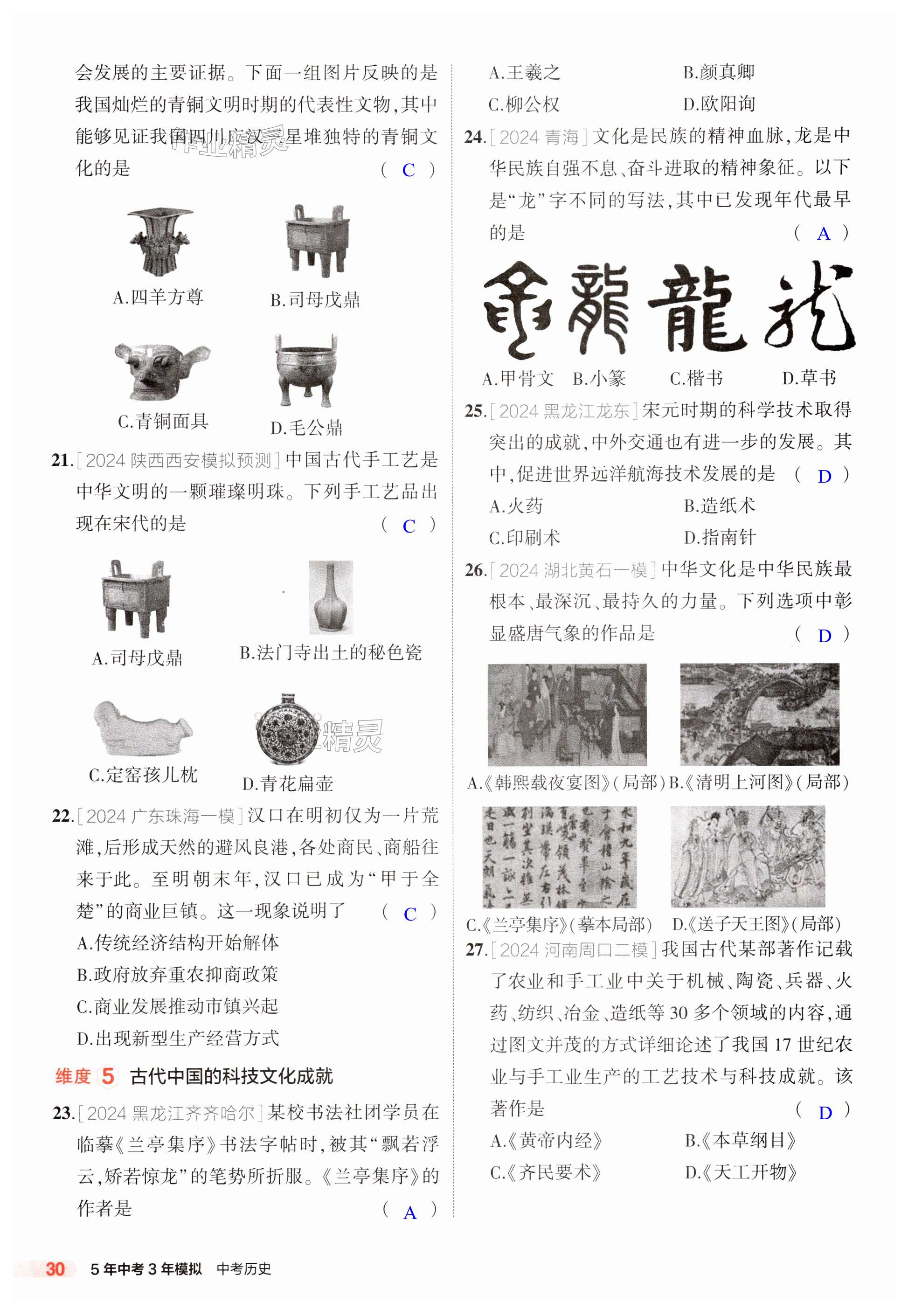注:目前有些书本章节名称可能整理的还不是很完善,但都是按照顺序排列的,请同学们按照顺序仔细查找。练习册 2025年5年中考3年模拟历史人教版山东专版 答案主要是用来给同学们做完题方便对答案用的,请勿直接抄袭。