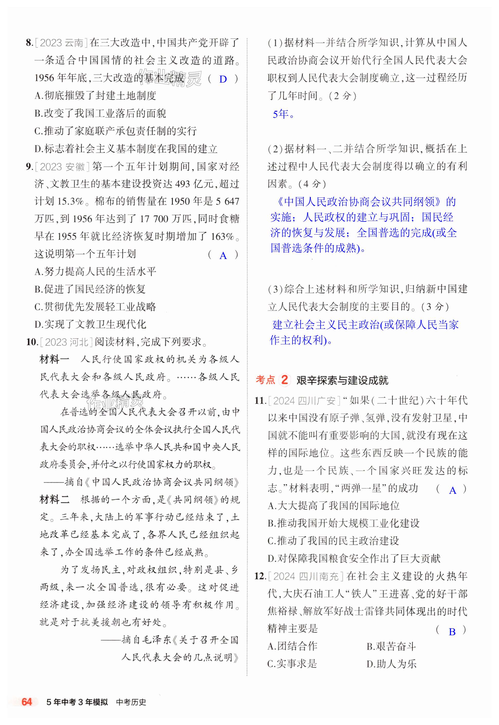 注:目前有些书本章节名称可能整理的还不是很完善,但都是按照顺序排列的,请同学们按照顺序仔细查找。练习册 2025年5年中考3年模拟历史人教版山东专版 答案主要是用来给同学们做完题方便对答案用的,请勿直接抄袭。