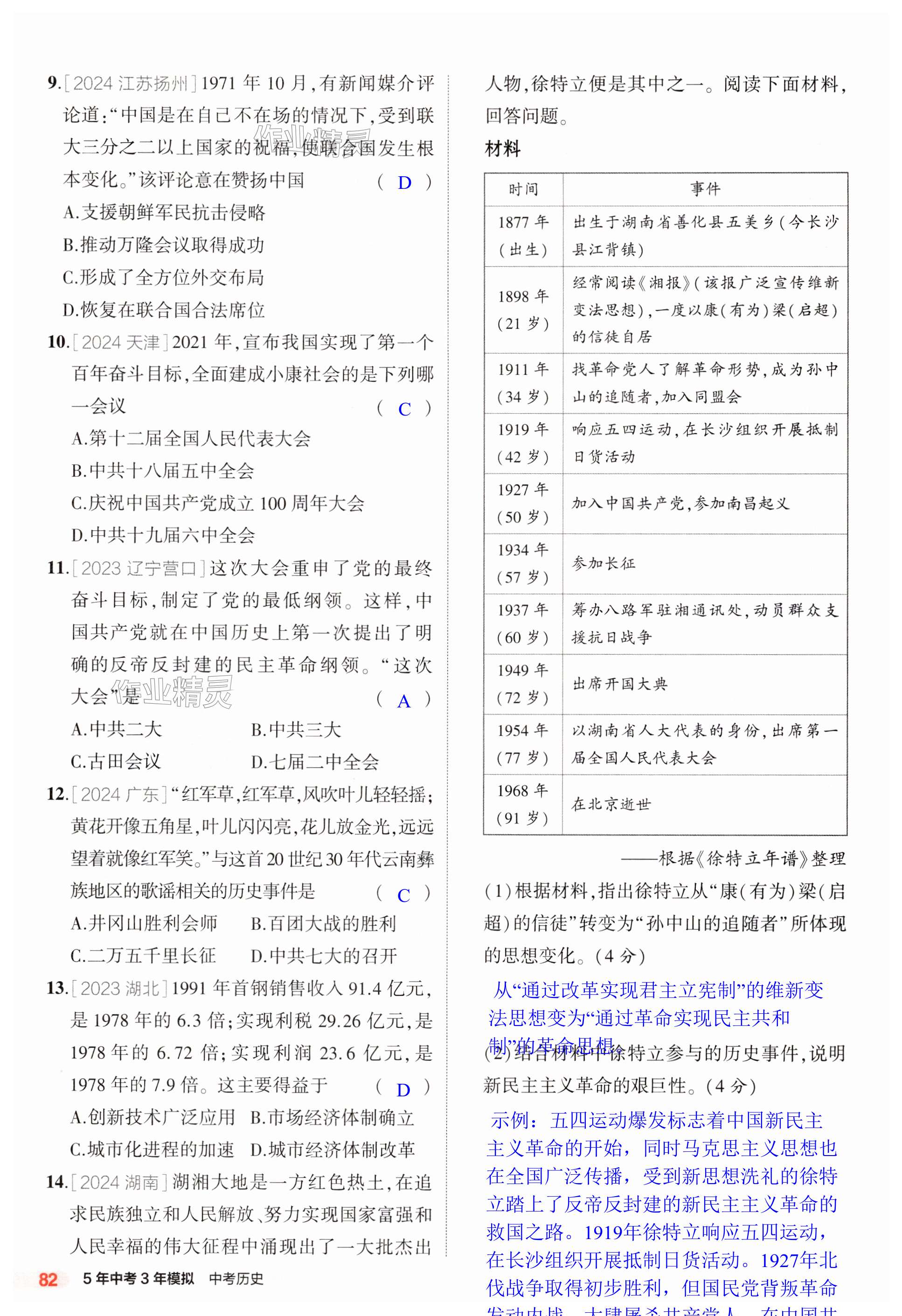 注:目前有些书本章节名称可能整理的还不是很完善,但都是按照顺序排列的,请同学们按照顺序仔细查找。练习册 2025年5年中考3年模拟历史人教版山东专版 答案主要是用来给同学们做完题方便对答案用的,请勿直接抄袭。