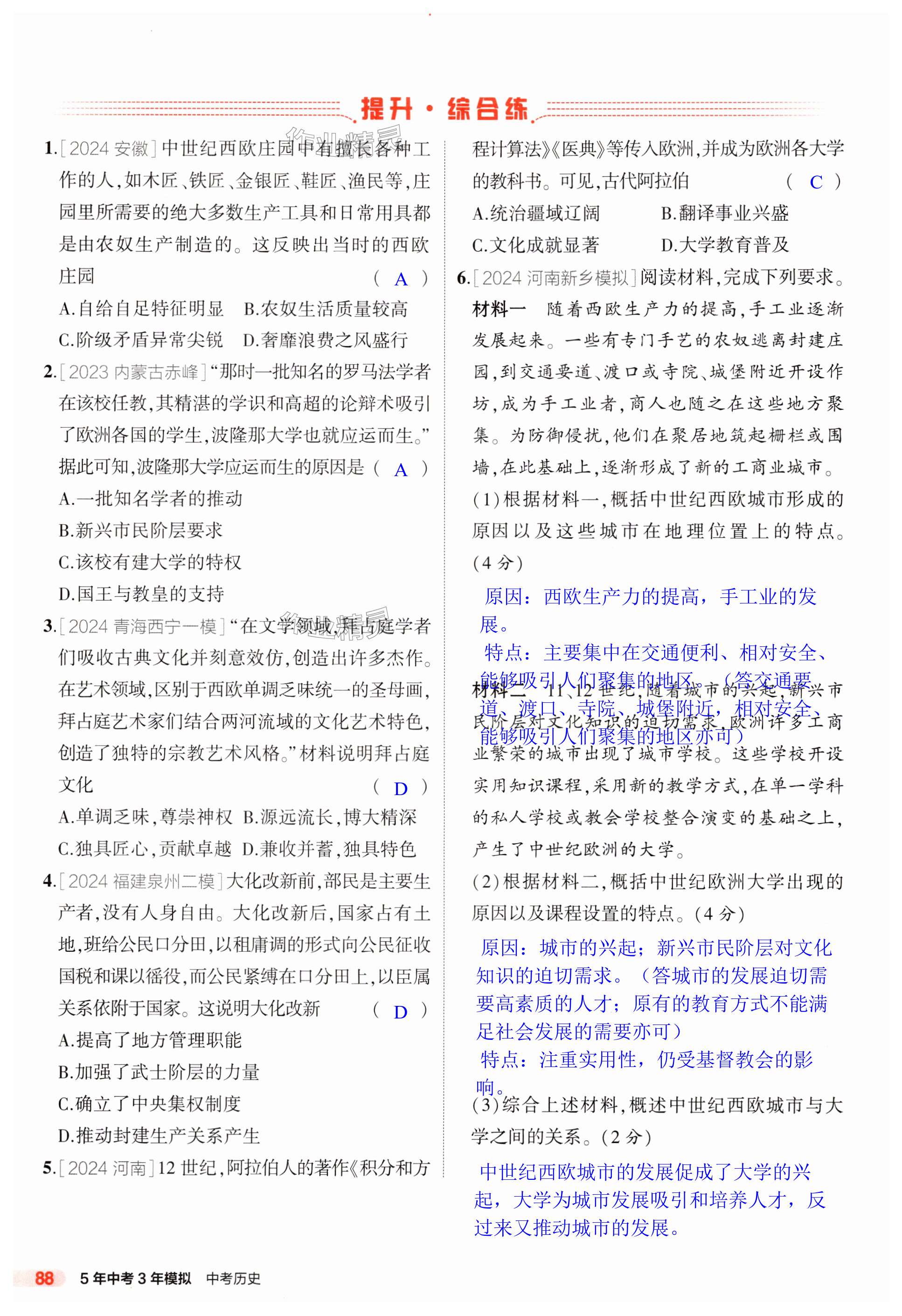 注:目前有些书本章节名称可能整理的还不是很完善,但都是按照顺序排列的,请同学们按照顺序仔细查找。练习册 2025年5年中考3年模拟历史人教版山东专版 答案主要是用来给同学们做完题方便对答案用的,请勿直接抄袭。