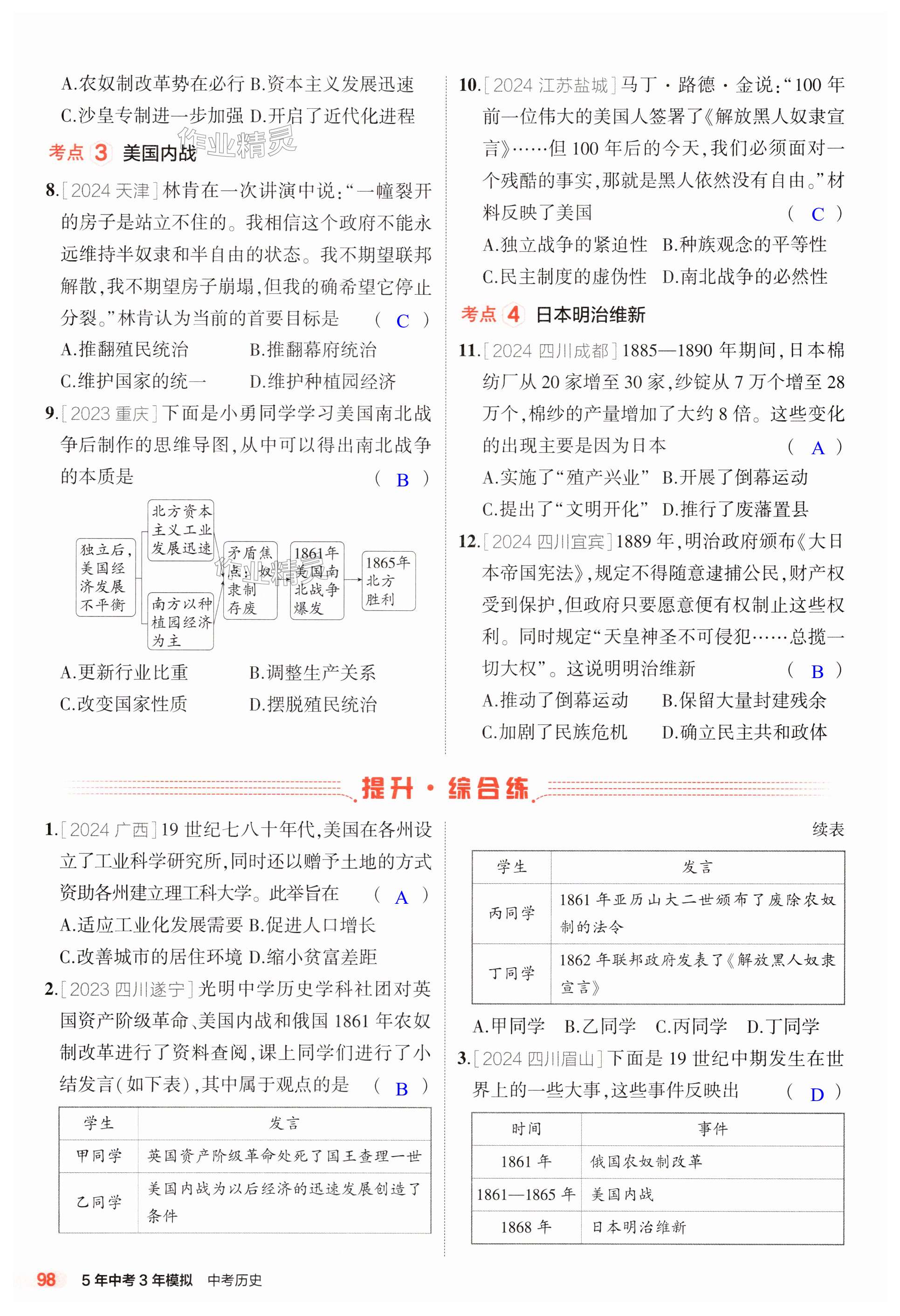 注:目前有些书本章节名称可能整理的还不是很完善,但都是按照顺序排列的,请同学们按照顺序仔细查找。练习册 2025年5年中考3年模拟历史人教版山东专版 答案主要是用来给同学们做完题方便对答案用的,请勿直接抄袭。