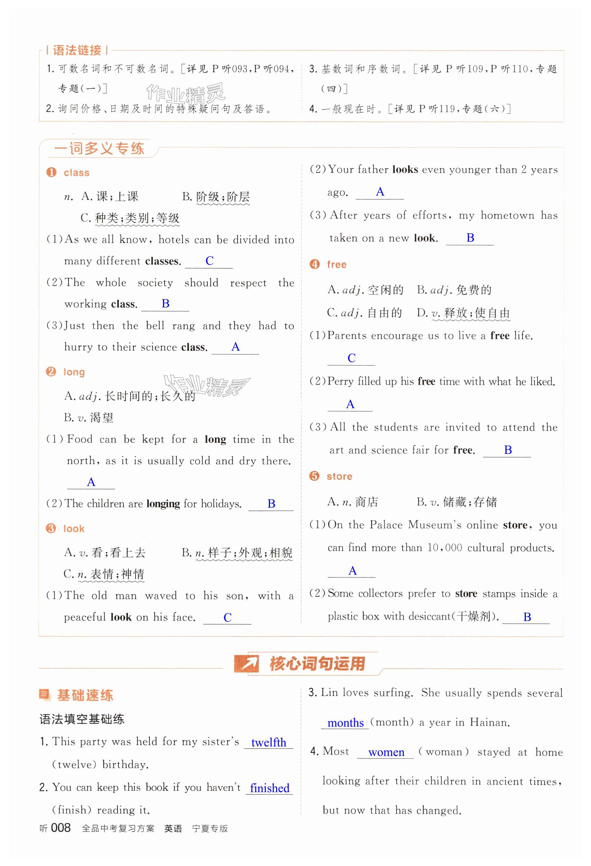 注:目前有些书本章节名称可能整理的还不是很完善,但都是按照顺序排列的,请同学们按照顺序仔细查找。练习册 2025年全品中考复习方案英语人教版宁夏专版 答案主要是用来给同学们做完题方便对答案用的,请勿直接抄袭。