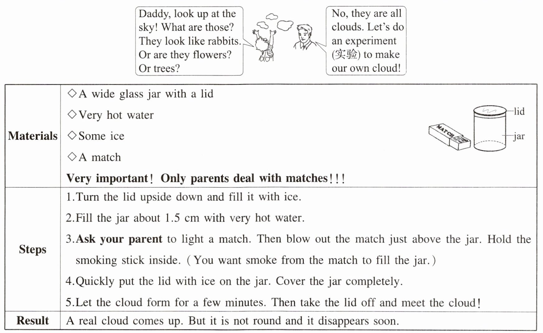 A.A glass jar. B.Very hot water. C.Some ice. D.Your parent’s help.