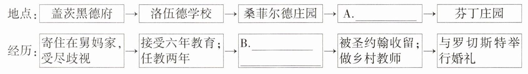 (1)A.沼泽居 B.担任家庭教师;与罗切斯特相爱