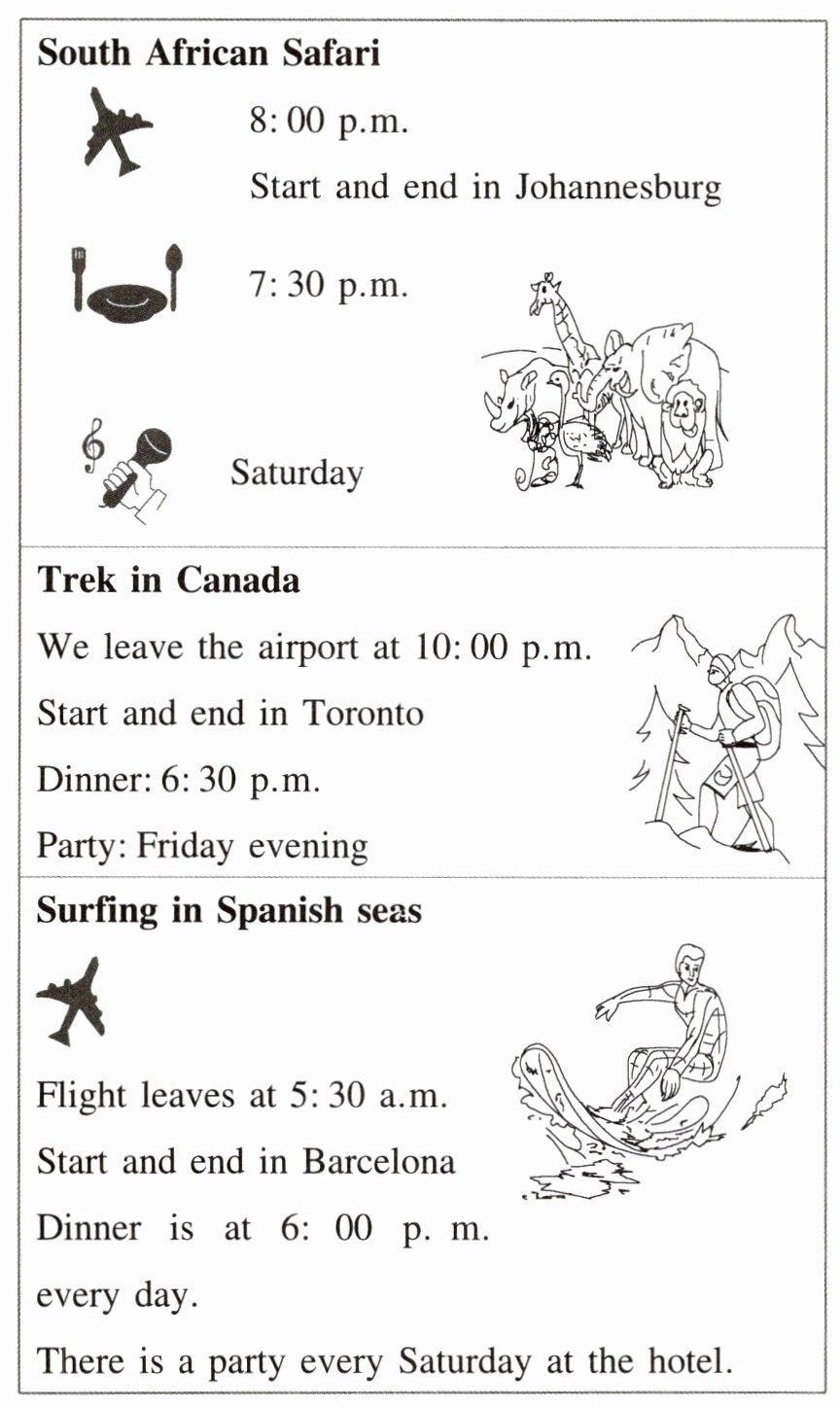 2.In the trip “Trek in Canada”, what time do you leave the airport?