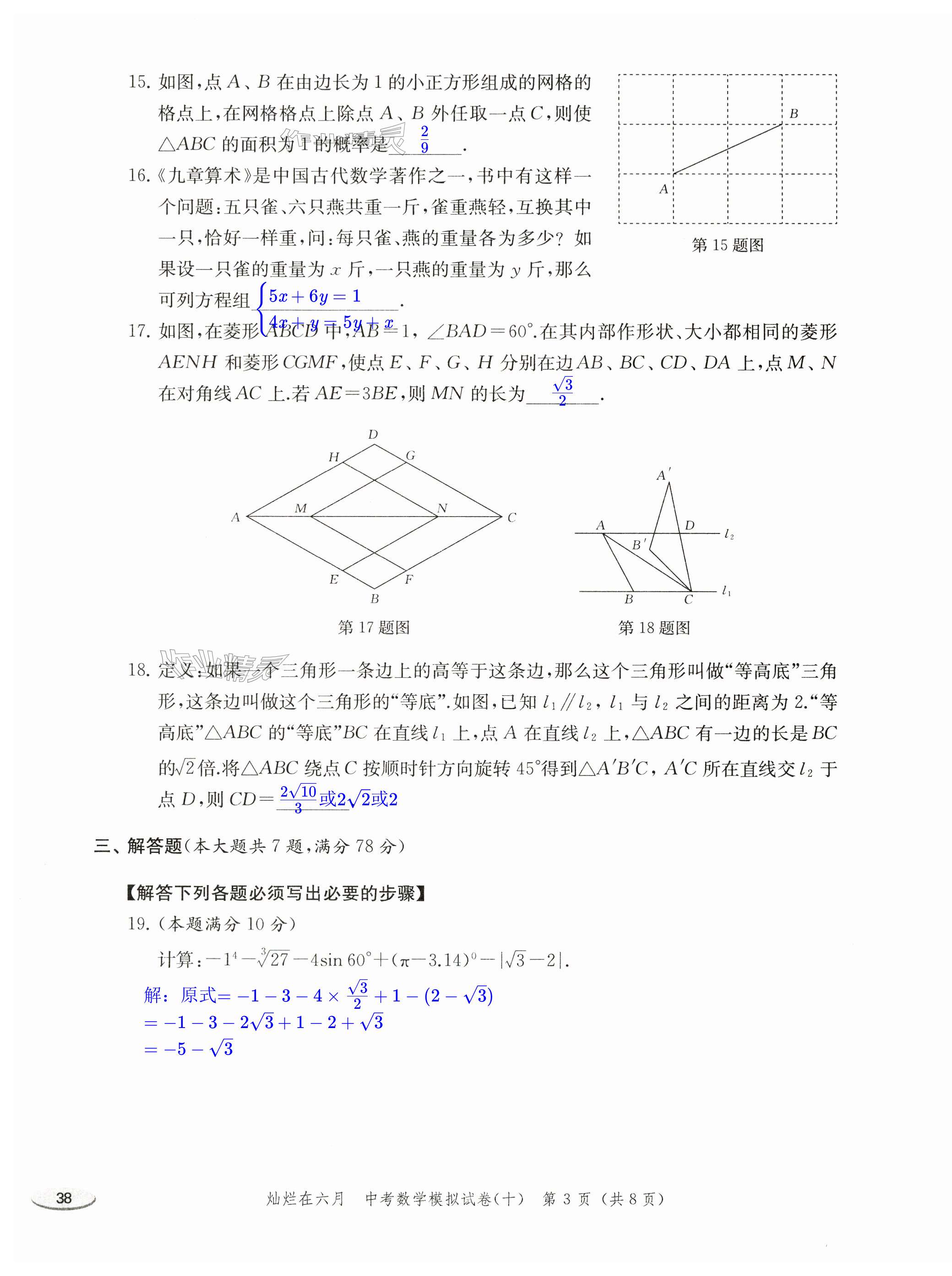 注:目前有些书本章节名称可能整理的还不是很完善,但都是按照顺序排列的,请同学们按照顺序仔细查找。练习册 2025年灿烂在六月模拟强化测试精编数学 答案主要是用来给同学们做完题方便对答案用的,请勿直接抄袭。