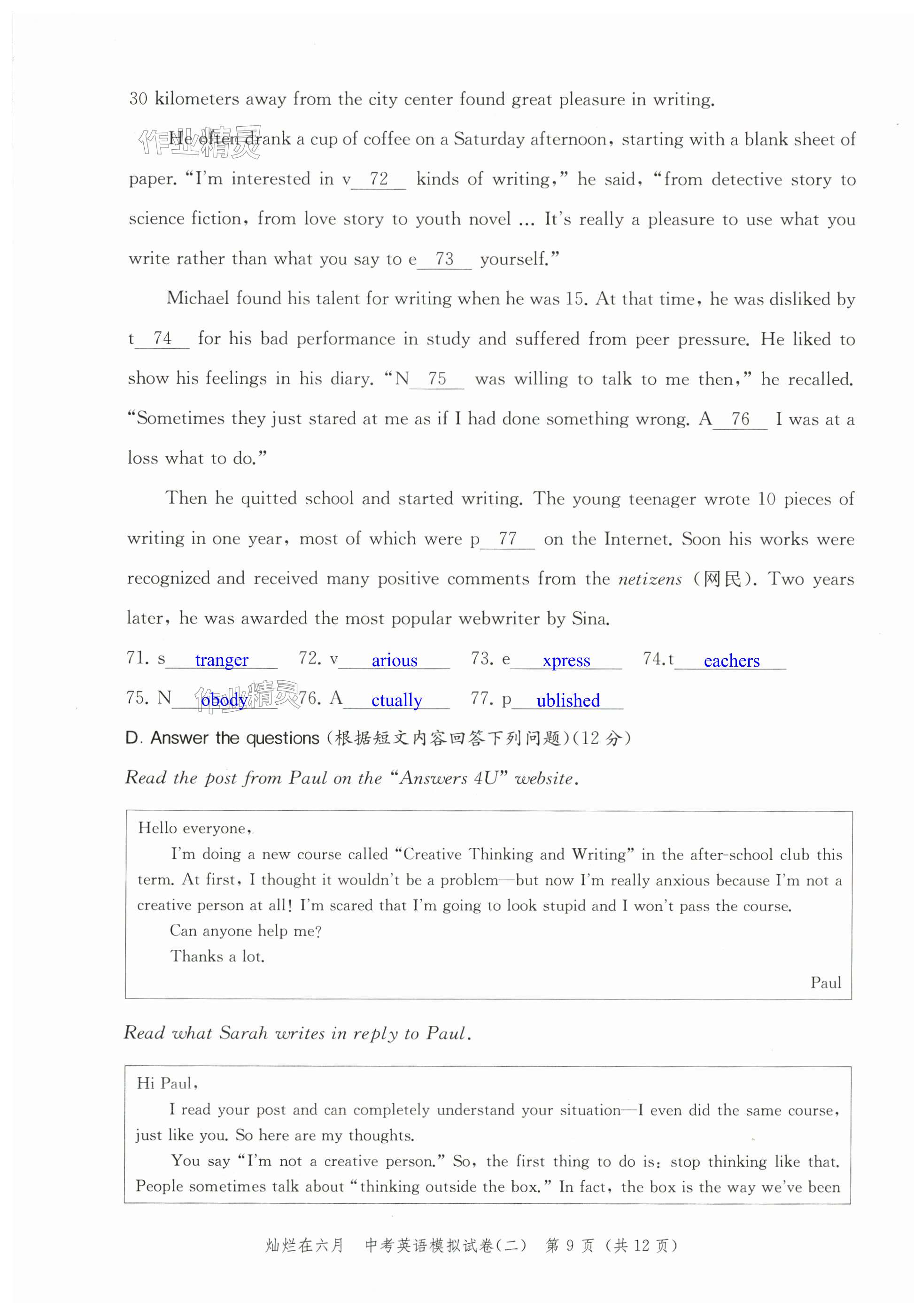 注:目前有些书本章节名称可能整理的还不是很完善,但都是按照顺序排列的,请同学们按照顺序仔细查找。练习册 2025年灿烂在六月模拟强化测试精编英语 答案主要是用来给同学们做完题方便对答案用的,请勿直接抄袭。