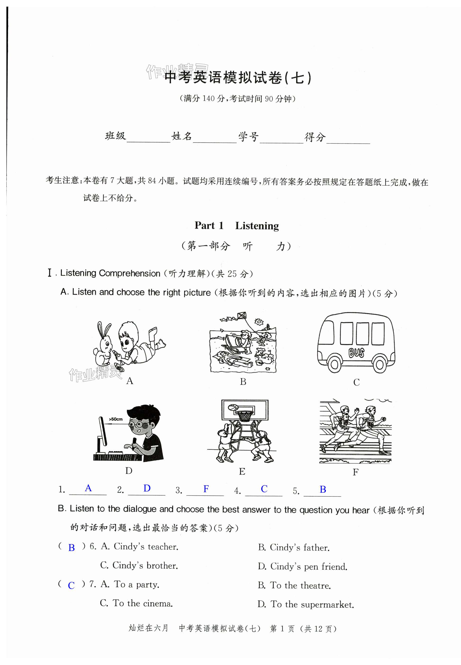 注:目前有些书本章节名称可能整理的还不是很完善,但都是按照顺序排列的,请同学们按照顺序仔细查找。练习册 2025年灿烂在六月模拟强化测试精编英语 答案主要是用来给同学们做完题方便对答案用的,请勿直接抄袭。