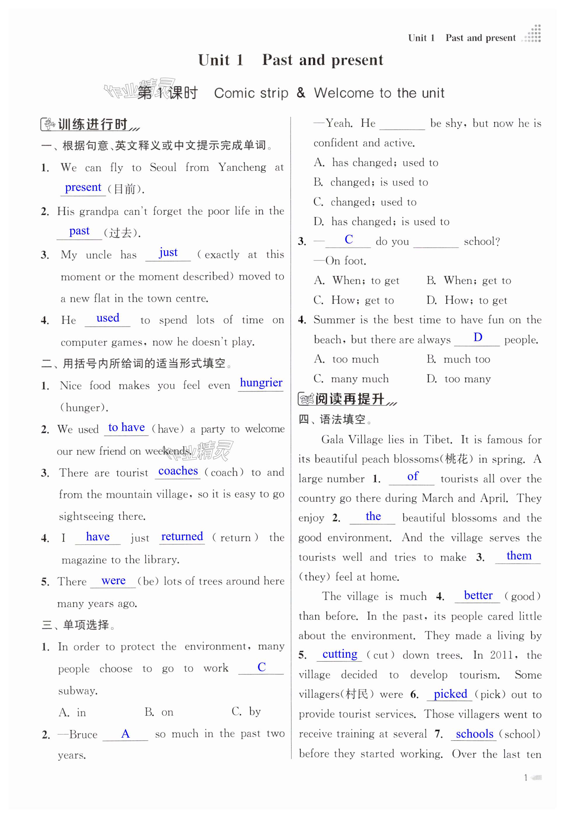 精英家教网> 2025年创新课时作业本八年级英语下册译林版 > 第1页 参考答案