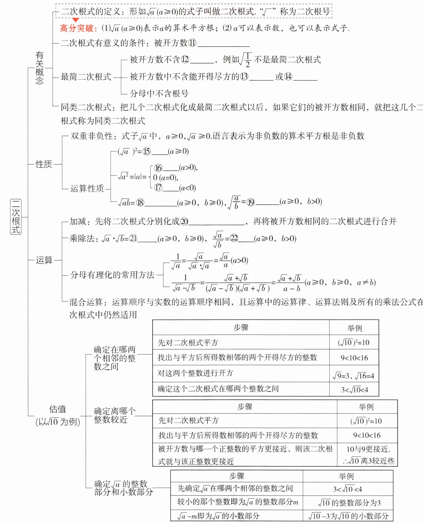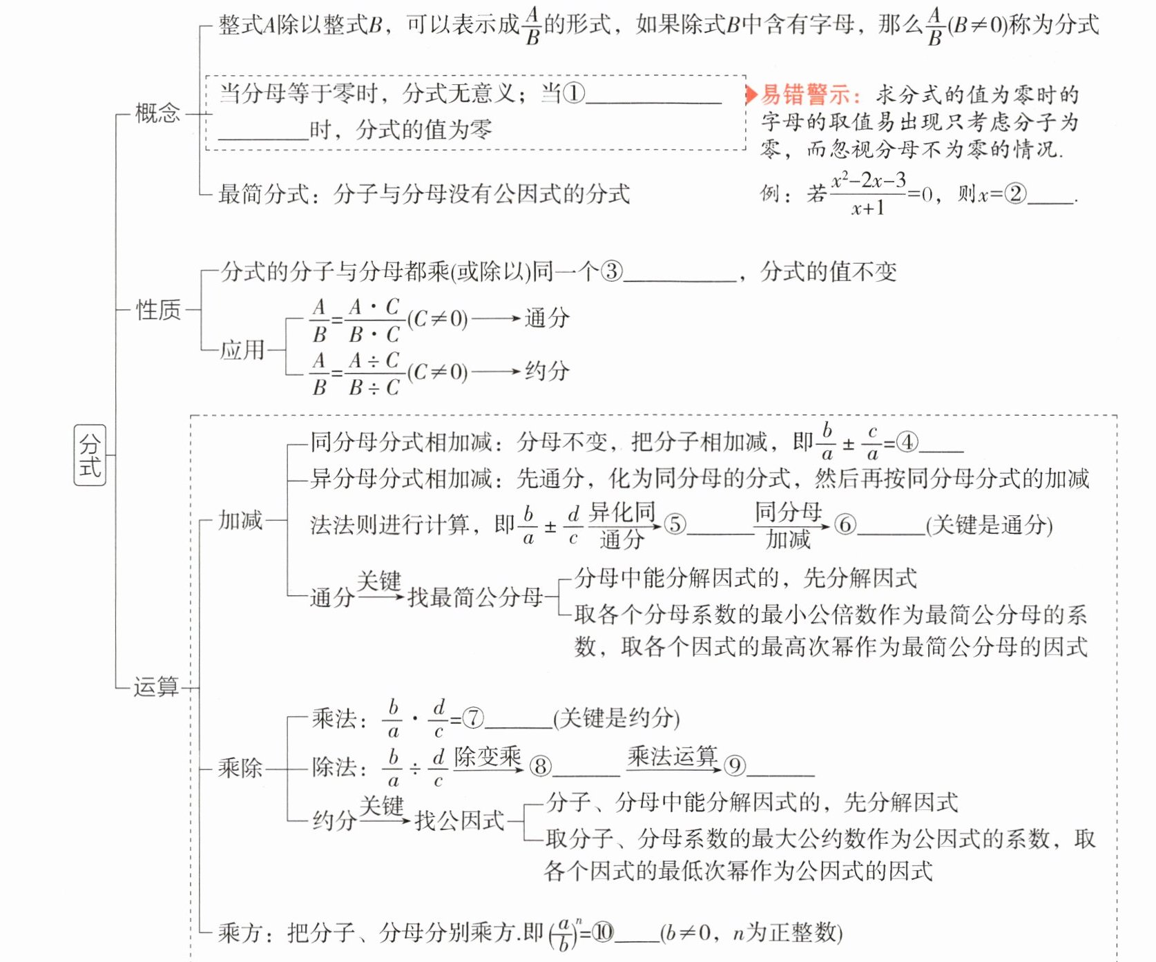 答案 ⑪大于或等于0 ⑫分母 ⑬因数 ⑭因式