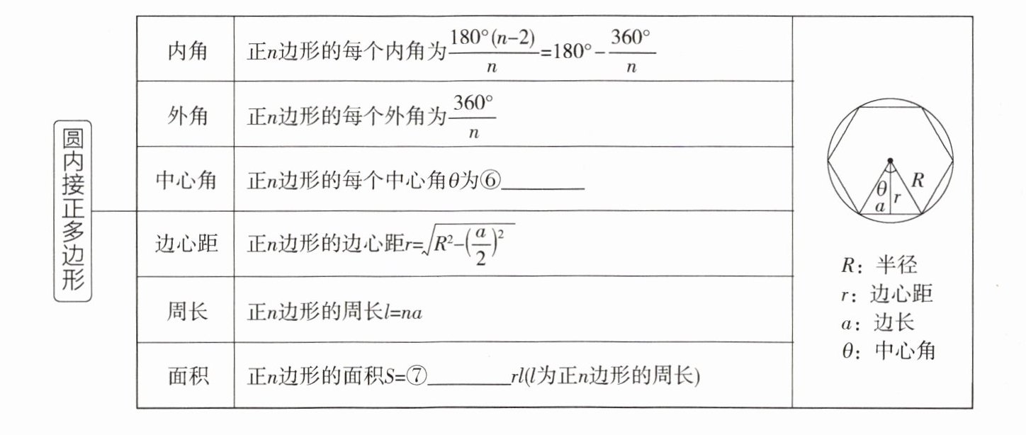 ⑥$\frac{360^{\circ}}{n}$ ⑦$\frac{1}{2}$