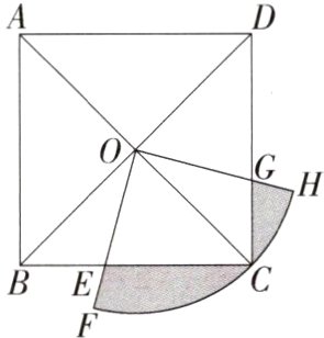 例3 如图,边长为4的正方形ABCD的对角线交于点O,以OC为半径的扇形的圆心角$\angle FOH = 90^{\circ}$.则图中阴影部分面积是 ________.