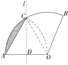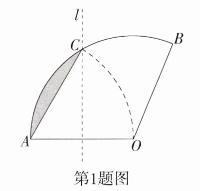 1.如图.将扇形AOB翻折,使点A与圆心O重合,展开后折痕所在直线l与$\overset{\frown}{AB}$交于点C,连接AC.若OA = 2,则图中阴影部分的面积是 ( )