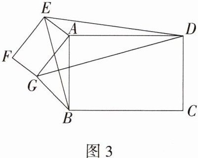 (3)把背景中的正方形分别改成矩形AEFG 和矩形ABCD,且$\frac{AE}{AG}=\frac{AB}{AD}=\frac{2}{3}$,AE = 4,AB = 8,将矩形AEFG绕点A按顺时针方向旋转(如图3),连接DE,BG.小组发现:在旋转过程中,DE²+BG²的值是定值,请求出这个定值.