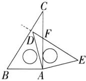 8.(2019广州,14,3分)一副三角板如图放置,将三角板ADE绕点A逆时针旋转α(0°<α<90°),使得三角板ADE的一边所在的直线与BC垂直,则α 的度数为__________.