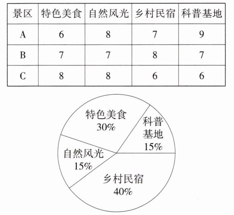 景区C得分为$8\times20\%+8\times30\%+6\times30\%+6\times20\% = 7$,