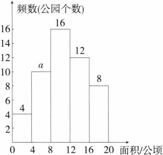 C.用地面积在$0<x\leq4$这一组的公园个数为4,数量最少,故C不符合题意;