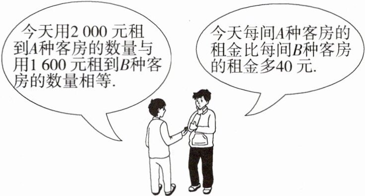 今天用2 000元租到$A$种客房的数量与用1 600元租到$B$种客房的数量相等.