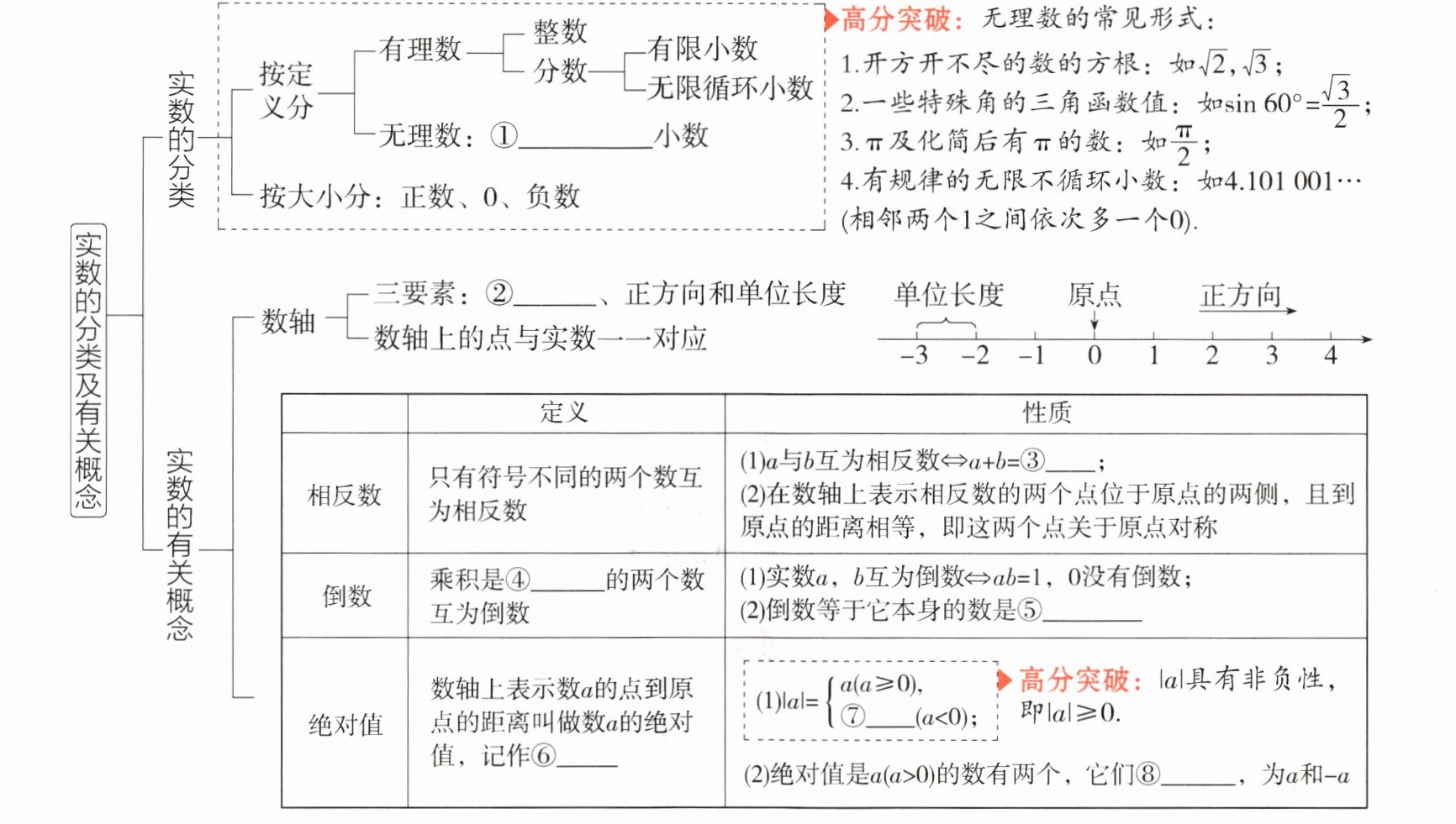 @@答案 ③0 ④1 ⑤1和-1 ⑥|a| ⑦-a ⑧互为相反数