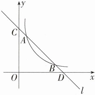 变式3 如图,在平面直角坐标系中,直线l与反比例函数$y=\frac{k}{x}(x>0)$的图象交于点$A(a,4 - a)$和点$B(b,4 - b)$,其中$a < b$,直线l与坐标轴的交点分别是C、D.
