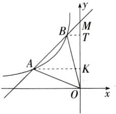 (3) 设直线 $AB$ 交 $y$ 轴于 $M$,过 $A$ 作 $AK \perp y$ 轴于 $K$,过 $B$ 作 $BT \perp y$ 轴于 $T$,如图.