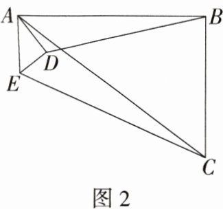 2.如图1,在Rt△ABC中,∠ABC = 90°,AB = 8,BC = 6,D是AB上一点,且AD = 2,过点D作DE//BC交AC于E,将△ADE绕A点顺时针旋转到图2的位置,则图2中$\frac{BD}{CE}$的值为______.