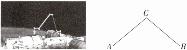 7. (2023 广东,18,7 分)2023 年 5 月 30 日,神舟十六号载人飞船发射取得圆满成功,3 名航天员顺利进驻中国空间站.图中的照片展示了中国空间站上机械臂的一种工作状态.当两臂 AC = BC = 10 m,两臂夹角∠ACB = 100°时,求 A,B 两点间的距离.(结果精确到 0.1 m,参考数据:sin 50°≈0.766,cos 50°≈0.643,tan 50°≈1.192)