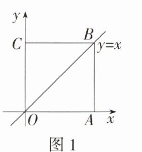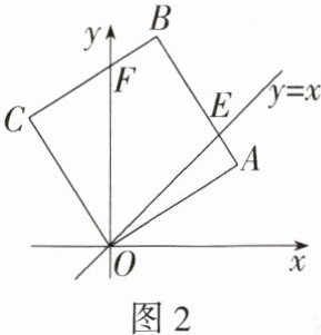 如图1,在平面直角坐标系中,正方形OABC的顶点A在x轴的正半轴上.如图2,将正方形OABC绕点O逆时针旋转,旋转角为α(0° < α < 45°),AB交直线y = x于点E,BC交y轴于点F.
