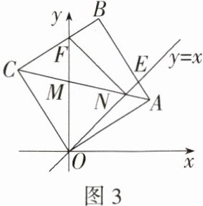 (3)如图3,对角线AC交y轴于点M,交直线y = x于点N,连接FN.将△OFN与△OCF的面积分别记为S₁与S₂.设S = S₁ - S₂,AN = n,求S关于n的函数表达式.