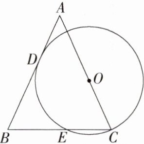 3.(2022广州,15,3分)如图,在△ABC中,AB=AC,点O在边AC上,以O为圆心,4为半径的圆恰好过点C,且与边AB相切于点D,交BC于点E,则劣弧$\overset{\frown }{DE}$的长是________.(结果保留π)