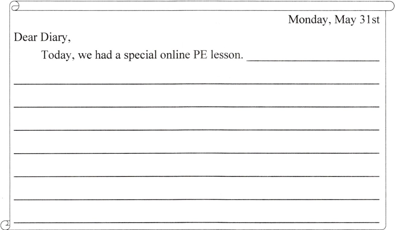 今天,跳绳世界冠军李华给大家上了一节云体育课。请写一则英文日记,记录这特别的一课。日记需包括以下要点: