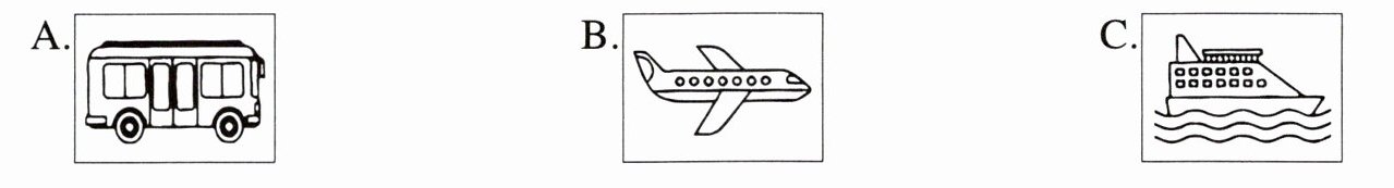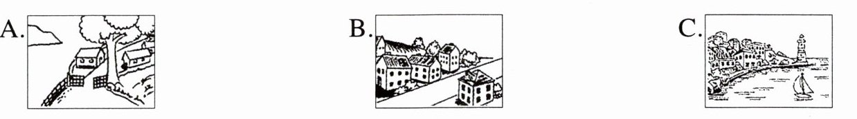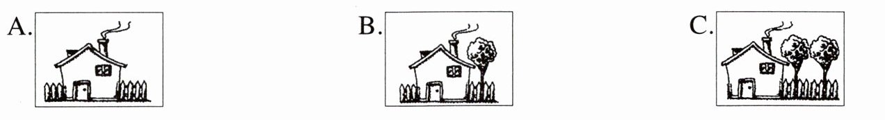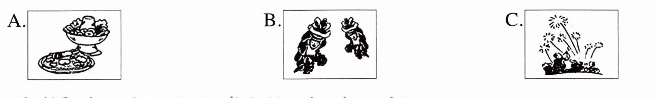 请根据所听内容,选择符合题意的图画回答问题。每个句子听两遍。