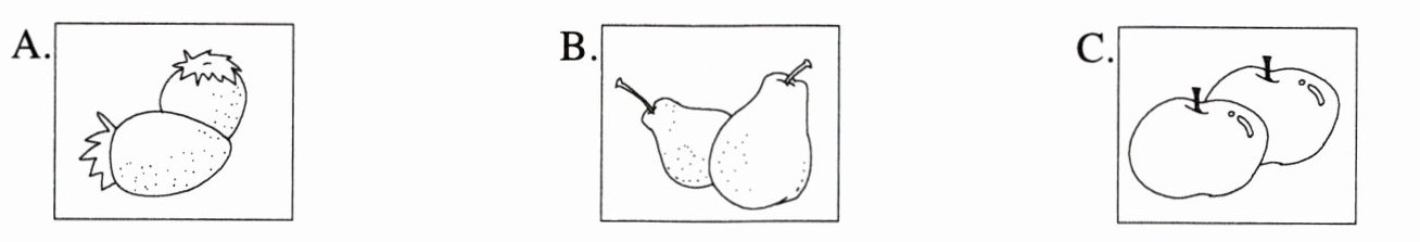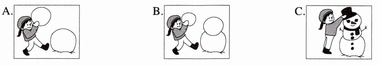 请根据所听内容,选择符合题意的图画回答问题。每个句子听两遍。