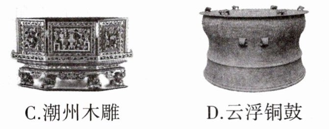 6.(2024广东,2)广东省博物馆馆藏丰富。下列藏品主要由金属材料制成的是 ( )
