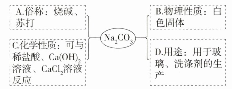 2.(2020深圳,4)小深同学用思维导图梳理了Na₂CO₃的相关知识,其中描述错误的是 ( )
