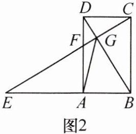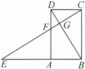 例1 (2020·安徽T23节选)如图,已知四边形$ABCD$是矩形,点$E$在$BA$的延长线上,$AE = AD$,$EC$与$BD$相交于点$G$,与$AD$相交于点$F$,$AF = AB$.