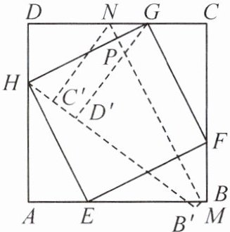 (2) 再沿垂直于 $ MN $ 的直线折叠得到折痕 $ GH $,点 $ G $,$ H $ 分别在边 $ CD $,$ AD $ 上,点 $ D $ 落在正方形所在平面内的点 $ D' $ 处,然后还原.若点 $ D' $ 在线段 $ B'C' $ 上,且四边形 $ EFGH $ 是正方形,$ AE = 4 $,$ EB = 8 $,$ MN $ 与 $ GH $ 的交点为 $ P $,则 $ PH $ 的长为