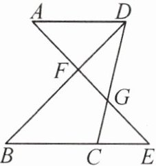 如:已知$\triangle ADF\backsim\triangle EBF$,相似比为$2:3$,$\triangle ADG\backsim\triangle ECG$,相似比为$2:1$,求$FG$与$AE$的比值.