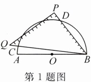1. (2024·淮南凤台县二模)如图,一个零刻度落在点A的量角器(半圆O)的直径为AB,等腰直角三角尺的一顶点与点B重合,它的斜边BQ与半圆交于点C,直角边BP与半圆交于点D。若点C在量角器上的读数为26°,则点D在量角器上的读数为(