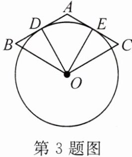 3. (2018·安徽T12·5分)如图,菱形 $ ABOC $ 的边 $ AB $,$ AC $ 分别与 $ \odot O $ 相切于点 $ D $,$ E $。若点 $ D $ 是 $ AB $ 的中点,则 $ \angle DOE = $