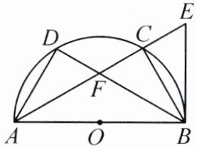 4. (2020·安徽T20·10分)如图,$ AB $ 是半圆 $ O $ 的直径,$ C $,$ D $ 是半圆 $ O $ 上不同于 $ A $,$ B $ 的两点,$ AD = BC $,$ AC $ 与 $ BD $ 相交于点 $ F $。$ BE $ 是半圆 $ O $ 所在圆的切线,与 $ AC $ 的延长线相交于点 $ E $。
