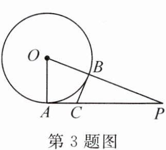 3. 如图,$ PA $ 与 $ \odot O $ 相切于点 $ A $,$ PO $ 交 $ \odot O $ 于点 $ B $,点 $ C $ 在 $ PA $ 上,且 $ CB = CA $。若 $ OA = 5 $,$ PA = 12 $,则 $ CA $ 的长为