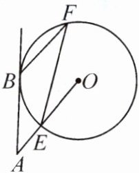 1. (2024·蚌埠二模)如图,$ \odot O $ 与 $ AB $ 相切于点 $ B $,连接 $ AO $ 交 $ \odot O $ 于点 $ E $,过点 $ B $ 作 $ BF // OA $ 交 $ \odot O $ 于点 $ F $,连接 $ EF $。若 $ \angle A = 40^{\circ} $,则 $ \angle OEF $ 的度数为