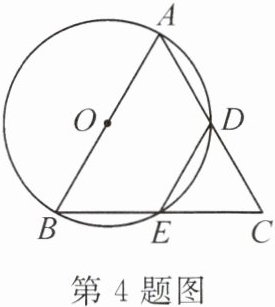 5. (2024·广安)如图,在等腰三角形$ABC$中,$AB = AC = 10$,$\angle C = 70^{\circ}$,以$AB$为直径作半圆,与$AC$,$BC$分别相交于点$D$,$E$,则$\overset{\frown}{DE}$的长为(