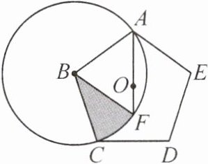 2. 如图,已知点$O$为正五边形$ABCDE$的中心,连接$AO$,以点$B$为圆心,$BC$的长为半径作圆,交$AO$的延长线于点$F$,连接$BF$。其中$AB = 2$。