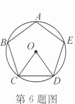 6. (2023·安徽T6·4分)如图,正五边形$ABCDE$内接于$\odot O$,连接$OC$,$OD$,则$\angle BAE - \angle COD=$(