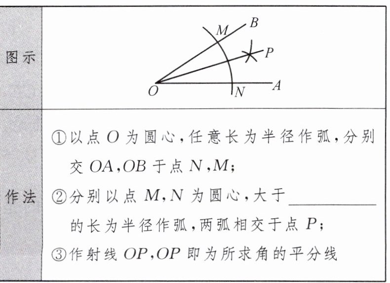 基本作图三:作已知角的平分线。
