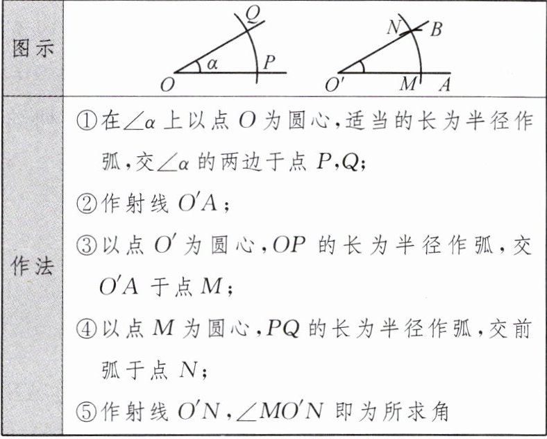 基本作图二:作一个角等于已知角。